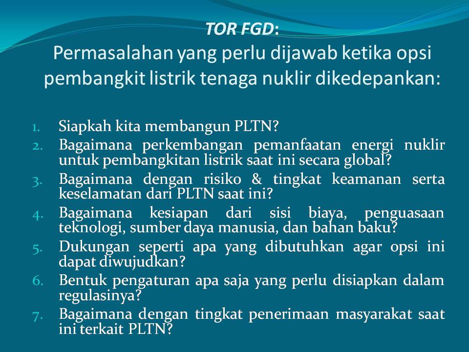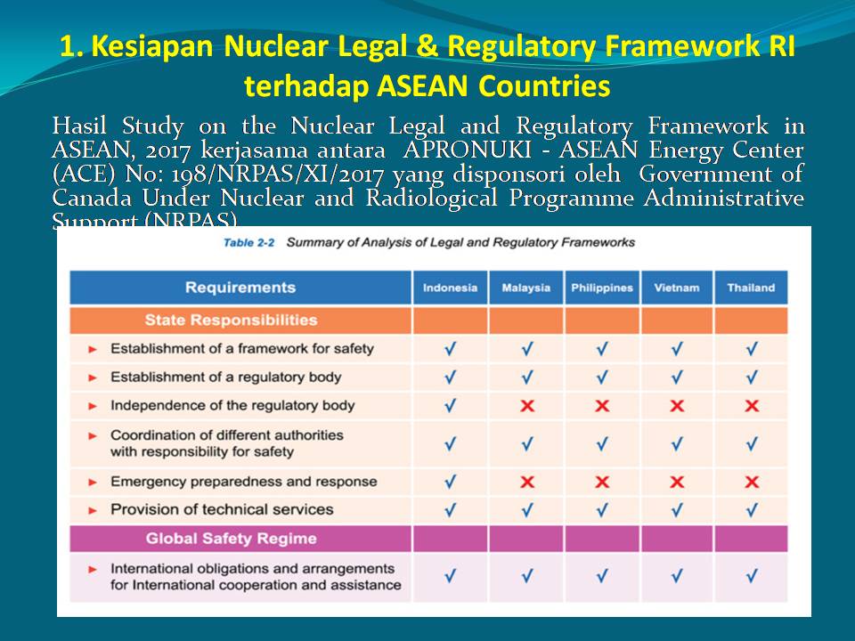 4. APRONUKI adopted SSR-2/1 rev 1 to compile 17 focus review areas that have been proposed to BAPETEN.